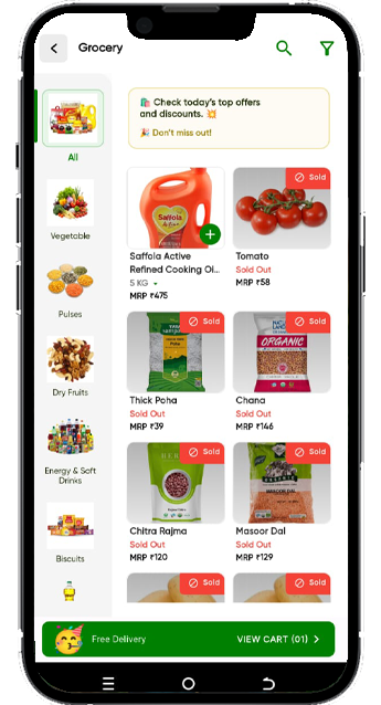 We deliver only the freshest and highest-quality groceries to your home. With trusted sourcing, hygienic packing, and timely delivery, we make your daily shopping easier, healthier, and more reliable.