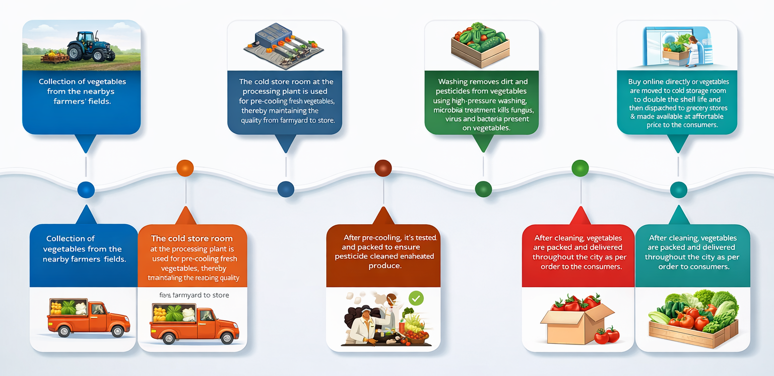 The brand is specialised supply of fruits and vegetables cleaned of pesticide residues, micro organisms with Eco friendly technology without out using chemicals in our processing plant.